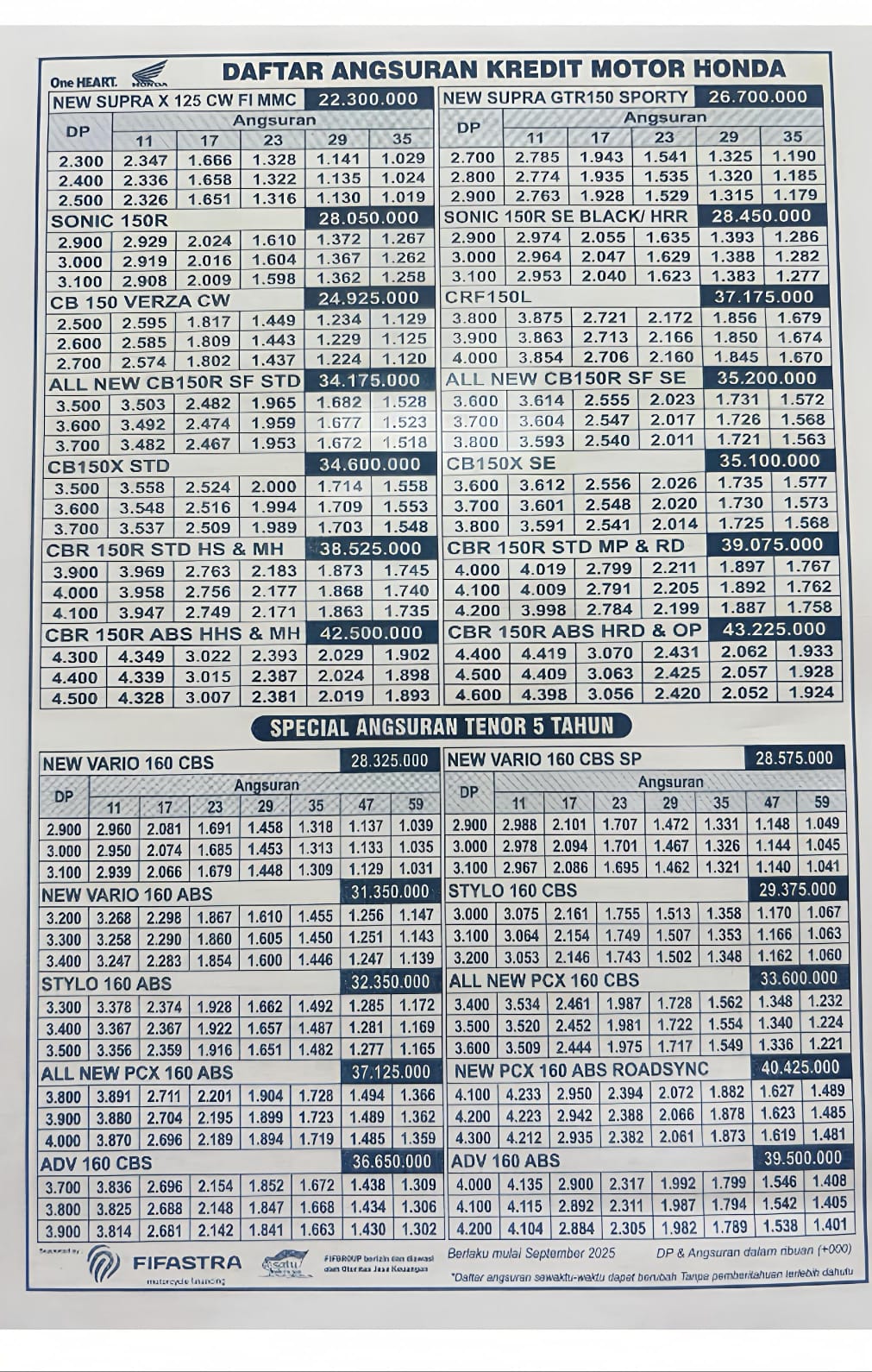 Harga Honda Kuningan Bulan Januari 2026