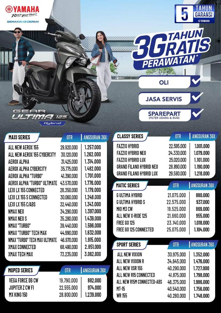 Yamaha Mio M3 125: Skutik bergaya sporty dengan performa lincah dan irit bahan bakar. Dilengkapi dengan fitur modern dan bagasi luas, cocok untuk pengendara muda yang aktif dan penuh gaya.